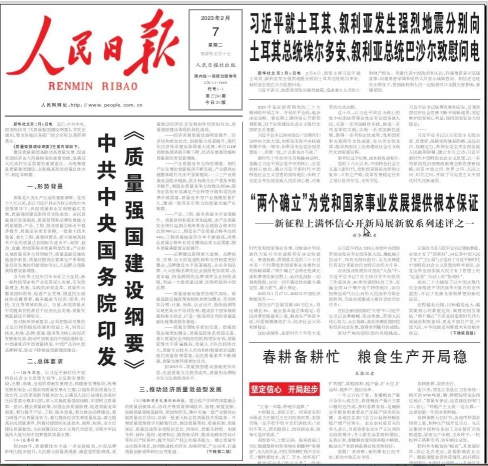 人民日报:中共中央 国务院印发《质量强国建设纲要》