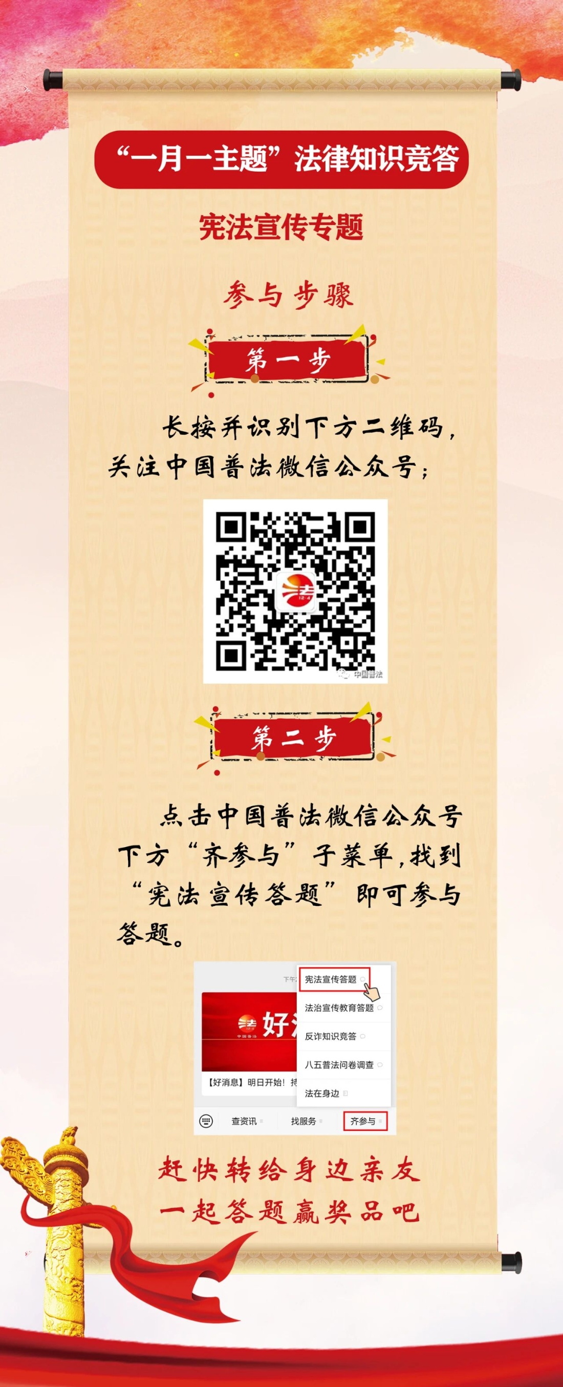 活动重点围绕学习宣传习近平法治思想,学习宣传宪法进行答题。活动期间每天推出5道题目,每人每天限答一次。活动结束后总计抽取500名个人优胜奖,奖品为人民币50元手机话费。