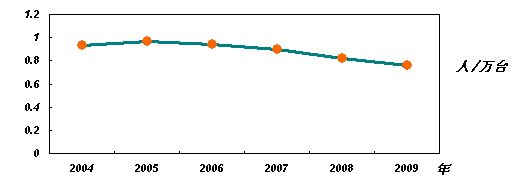 2004年至2009年万台设备事故死亡人数趋势图