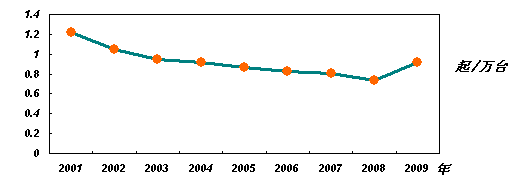 2001年至2009年万台设备事故起数趋势图
