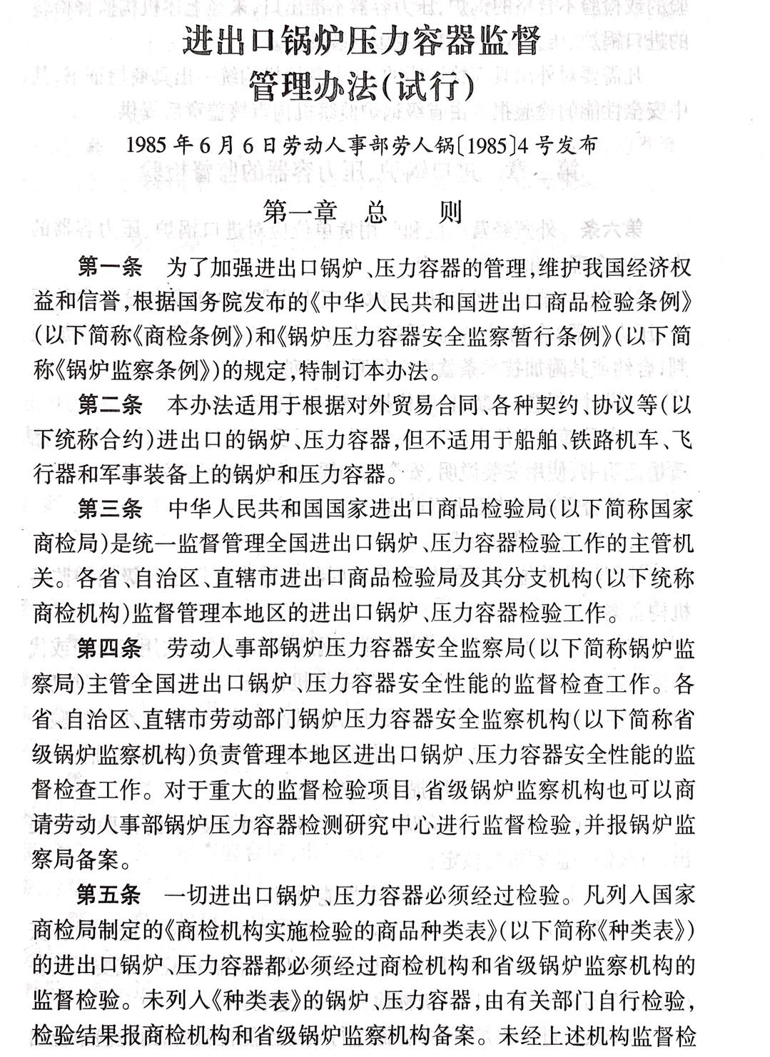 进出口锅炉压力容器监督管理办法(劳人锅[1985]4号)
