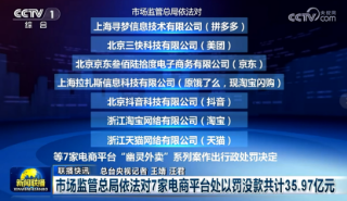 市场监管总局依法对7家电商平台 处以罚没款共计35.97亿元