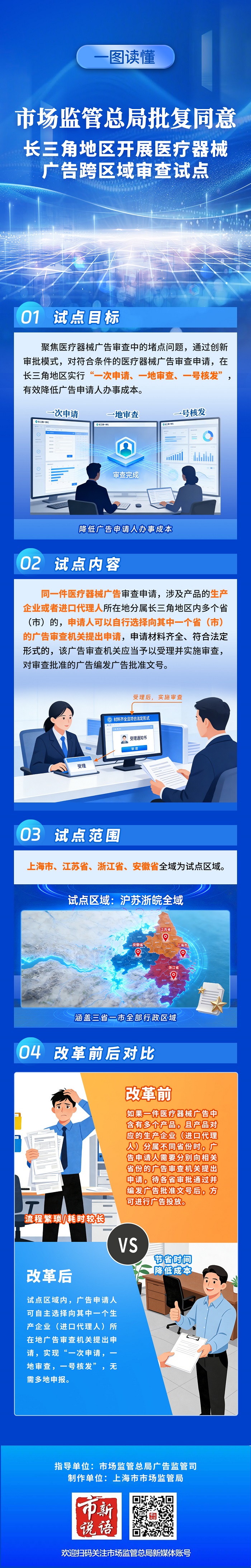 一图读懂 | 市场监管总局批复同意长三角地区开展医疗器械广告跨区域审查试点