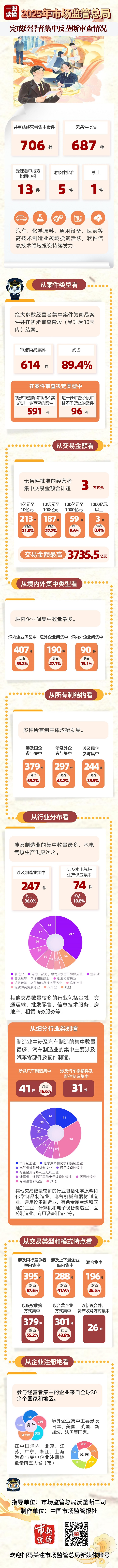 一图读懂 | 2025年市场监管总局完成经营者集中反垄断审查情况