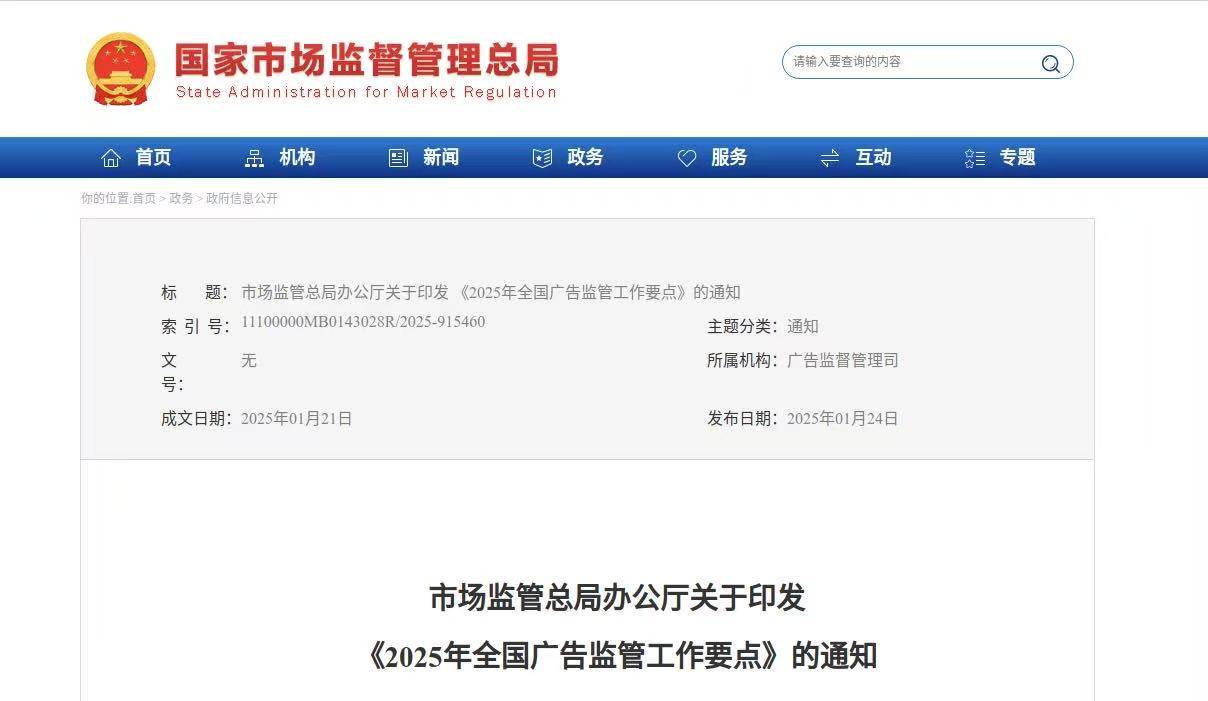 - 市场监管总局印发《〈中华人民共和国广告法〉适用问题执法指南(一)》2025-07-08