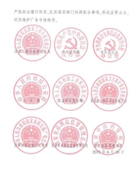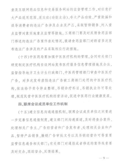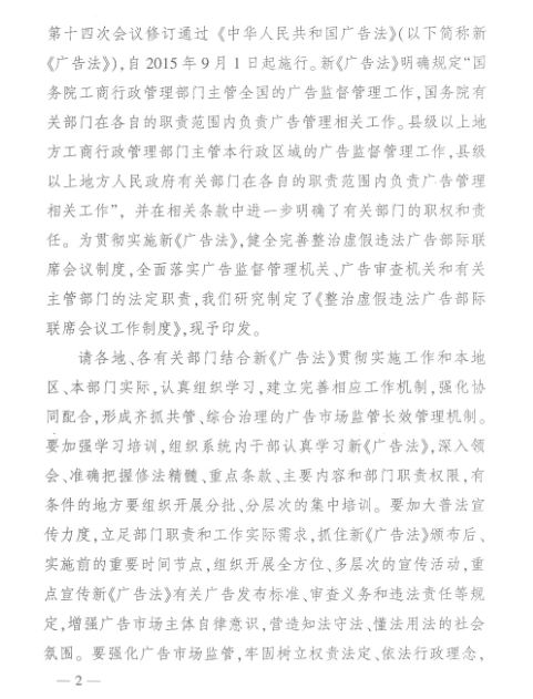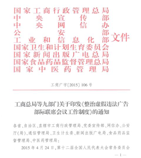 工商总局等九部门关于印发《整治虚假违法广告部际联席会议工作制度》的通知