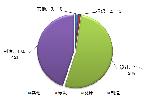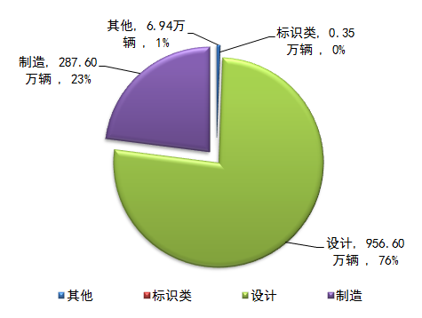 从缺陷原因看,因设计问题召回117次,涉及车辆956.60万辆;因制造问题召回100次,涉及车辆287.60万辆;因标识问题召回2次,涉及车辆3461辆;因其他原因召回3次,涉及车辆6.94万辆(见图7)。