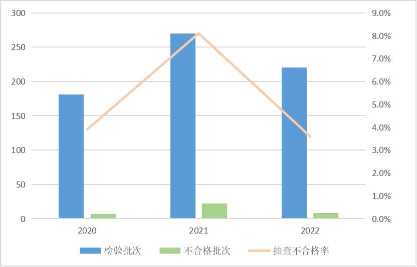 图3 机动车儿童乘员用约束系统产品近3年国家监督抽查情况