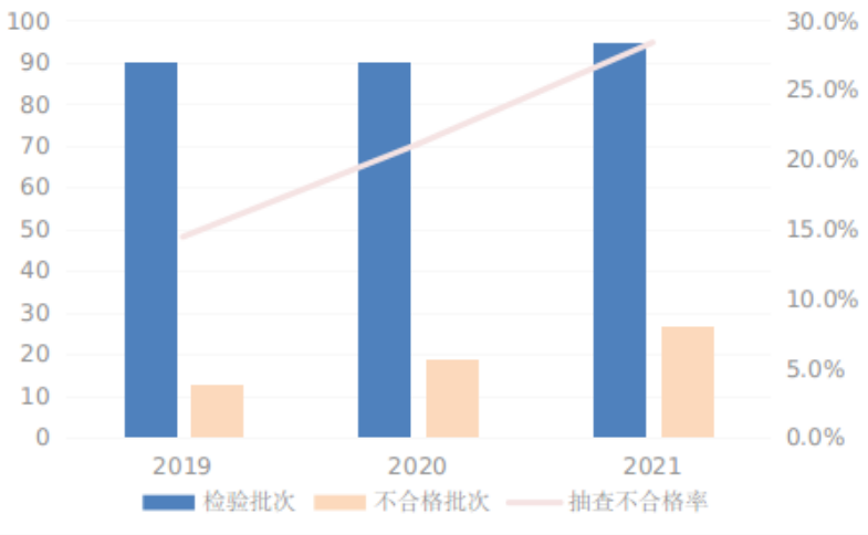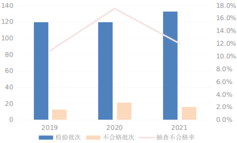 图2 棕纤维弹性床垫产品近3年国家监督抽查情况