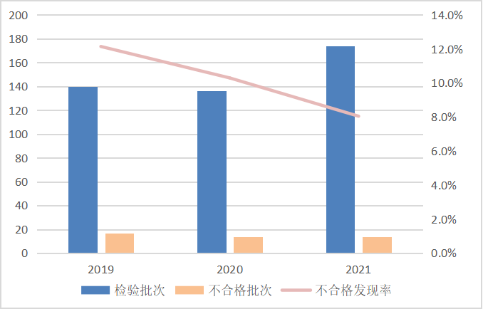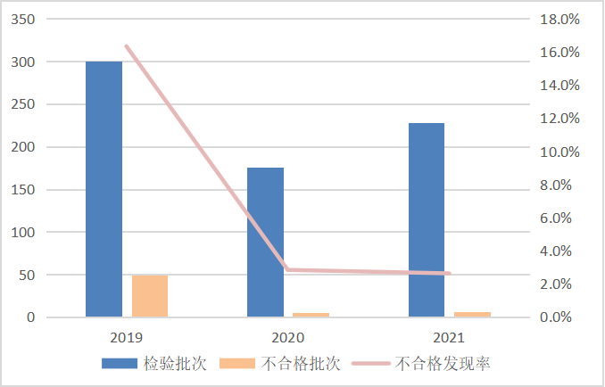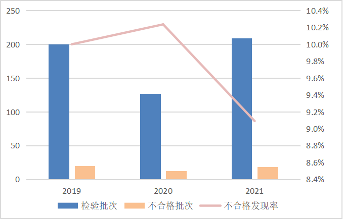 图3 眼镜架产品近3年国家监督抽查情况