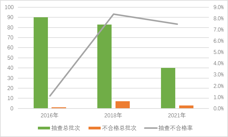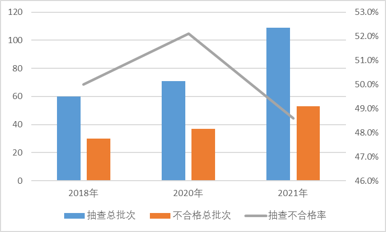 本次重点抽查了产业集聚区新疆维吾尔自治区的生产企业,抽查了91批次产品,抽查不合格率为53.8%。